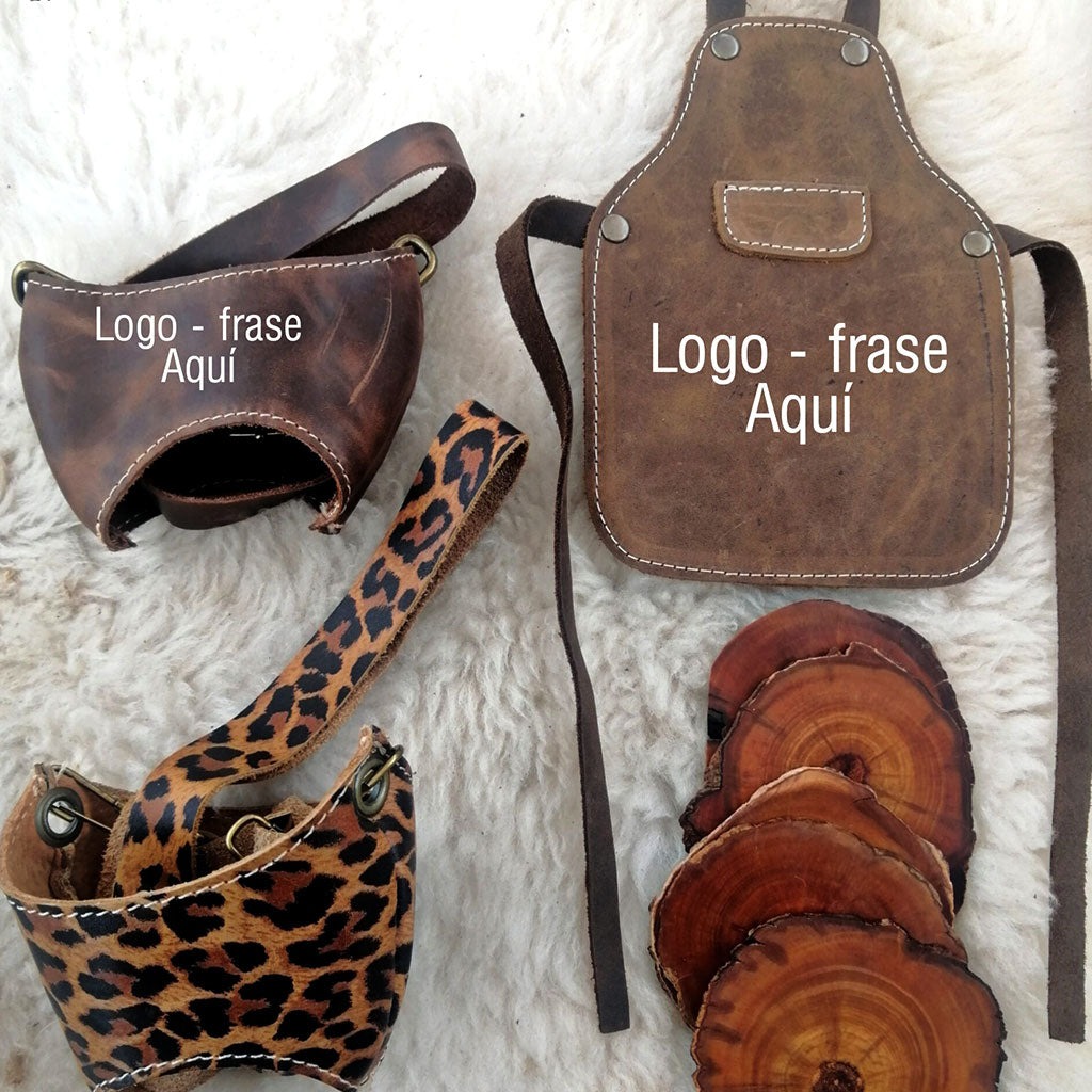 2 Porta copa de cuero (color cafe o animal print a elección) + personalizados.